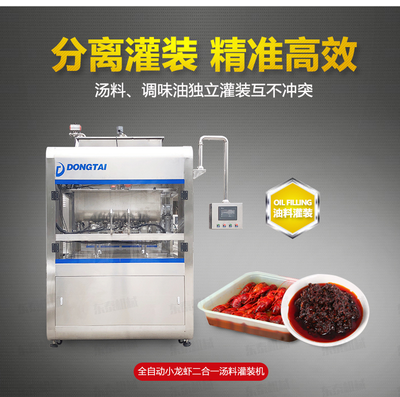 紅油辣椒醬自動(dòng)灌裝機(jī)針對(duì)于調(diào)味小龍蝦深加工行業(yè)的調(diào)味油、湯料的加注,整個(gè)系統(tǒng)為直線式傳送結(jié)構(gòu),湯料、調(diào)味油可在同一臺(tái)設(shè)備上實(shí)現(xiàn)準(zhǔn)確定量,且湯料、調(diào)味油為獨(dú)立的灌裝系統(tǒng),互不沖突,具有灌裝范圍廣、速度快、維護(hù)簡(jiǎn)單等特點(diǎn),該系統(tǒng)可大大減少生產(chǎn)環(huán)節(jié)中的浪費(fèi),同時(shí)也提高了生產(chǎn)效率,為企業(yè)節(jié)約生產(chǎn)成本。