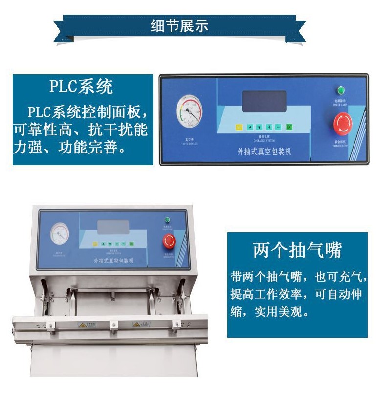 電源 220/50HZ  電機(jī)功率 1KW  熱封功率 0.95KW  抽氣速率 20m³/h  充氣速率 0.85mpa