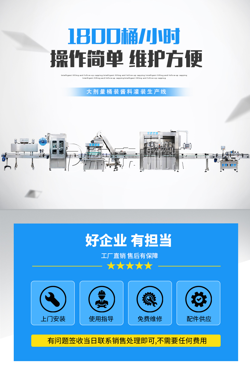 該系列灌裝機采用活塞式伺服系統(tǒng)驅(qū)動原理,適用于粘流體中帶小顆粒并且可流動的較為粘稠的物料灌裝。比如:洗衣液、洗潔精、甜面醬、沙拉醬、芝麻醬、食用油等的灌裝。設備采用伺服系統(tǒng)定量推料,在人機界面數(shù)字化調(diào)節(jié)計量,并且可設定所需計量,觸摸屏一觸即達,而且可以單頭微調(diào)計量。操作簡單,維護方便,節(jié)省人工成本,生產(chǎn)效率更高。