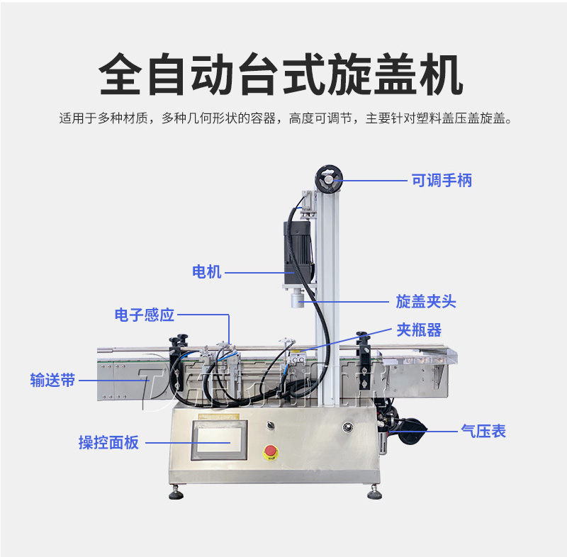 產(chǎn)品說明:生產(chǎn)線根據(jù)灌裝范圍選擇型號,灌裝部分為雙頭下潛式灌裝機,適用于不同物料不同瓶子的灌裝,配備自動壓蓋機和圓瓶貼標機,可實現(xiàn)不同蓋子的旋蓋貼標工作。