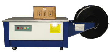 該打包機(jī)為半自動打包機(jī),打包臺面較低,適用于各種較重型貨物的打包,如紙箱、郵政包裹、書刊雜志等較輕物品的的捆扎打包。